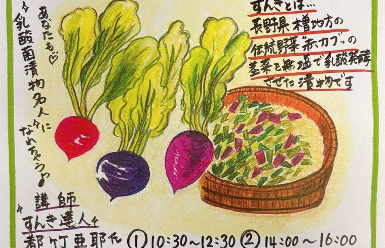 長野県木曽地域に受け継がれてきた伝統野菜・開田(かいだ)カブを使い、世界三大“無塩”乳酸発酵食品の一つ「すんき」作りに挑戦します。