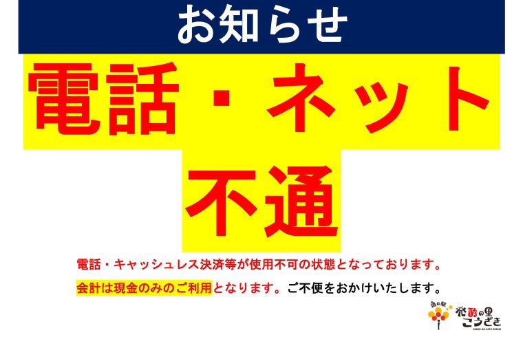 2/24(火)正午以降、障害により電話不通・キャッシュレス決済利用不可です
